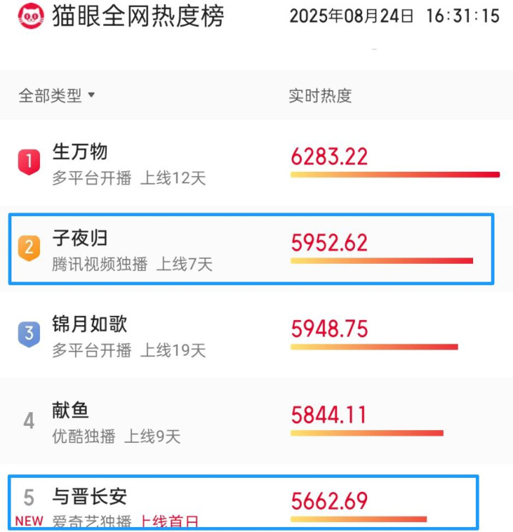 没办法了,只能去扒扒有什么剧能看,通过猫眼热度分析,我选中了《子夜归》这部热播古装玄幻剧。